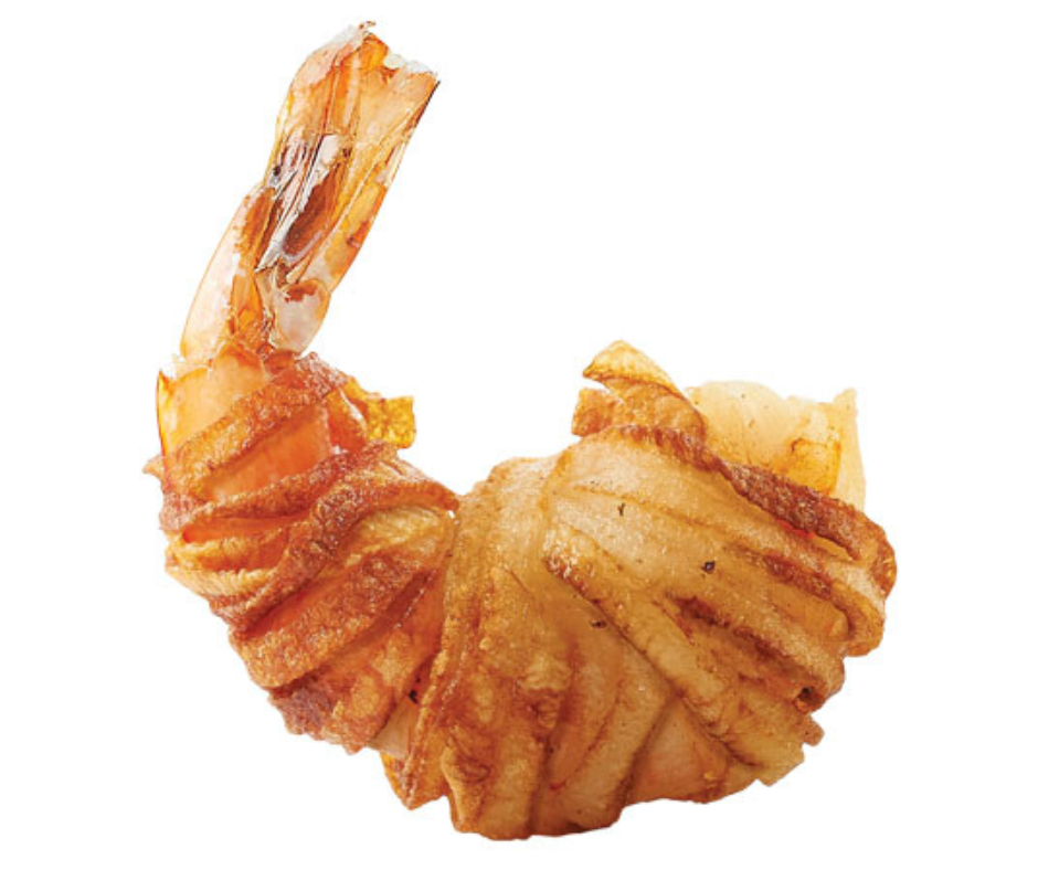 100% naturalne krewetki premium, ręcznie owinięte paskami ziemniaka