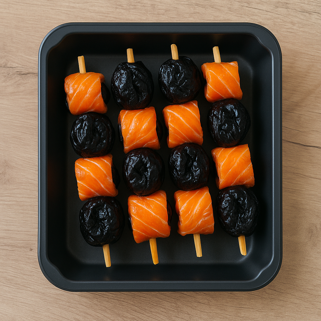 Szaszłyki z wędzonym łososiem i wędzoną śliwką 500 g – Wykwintne połączenie smaków